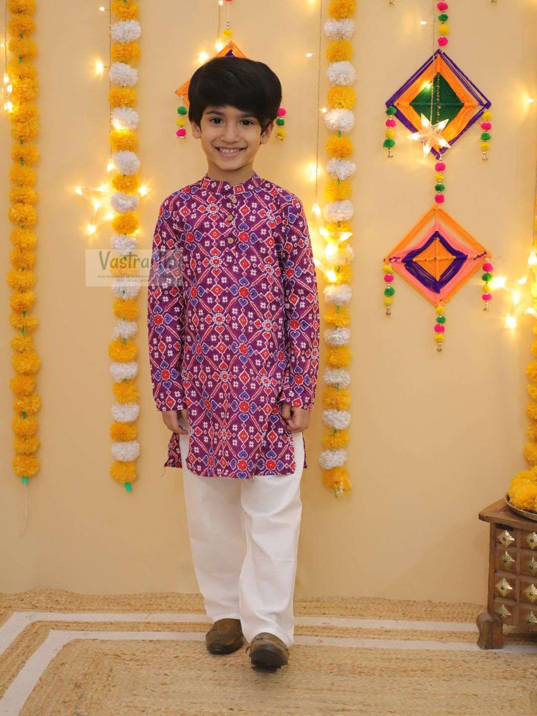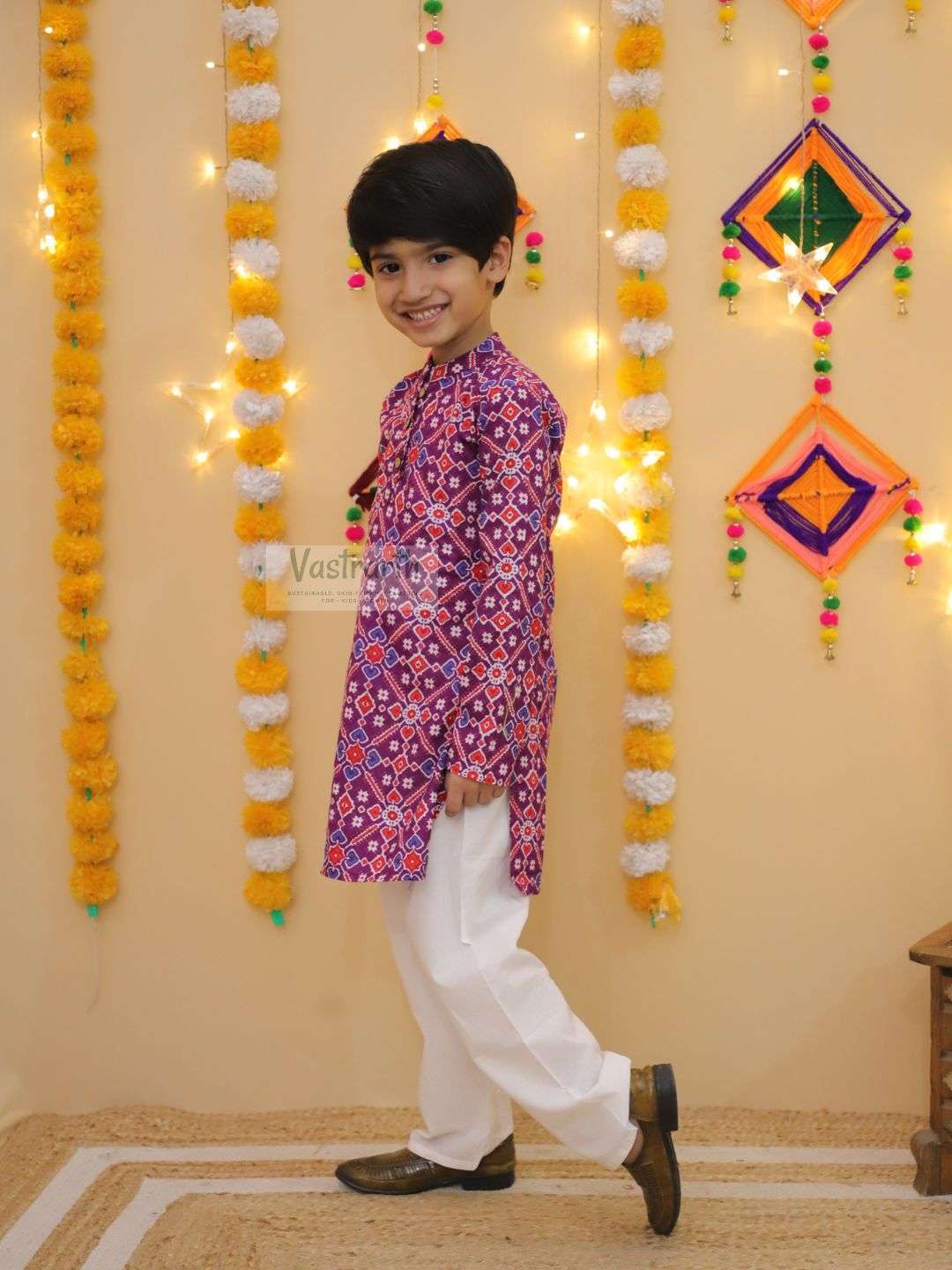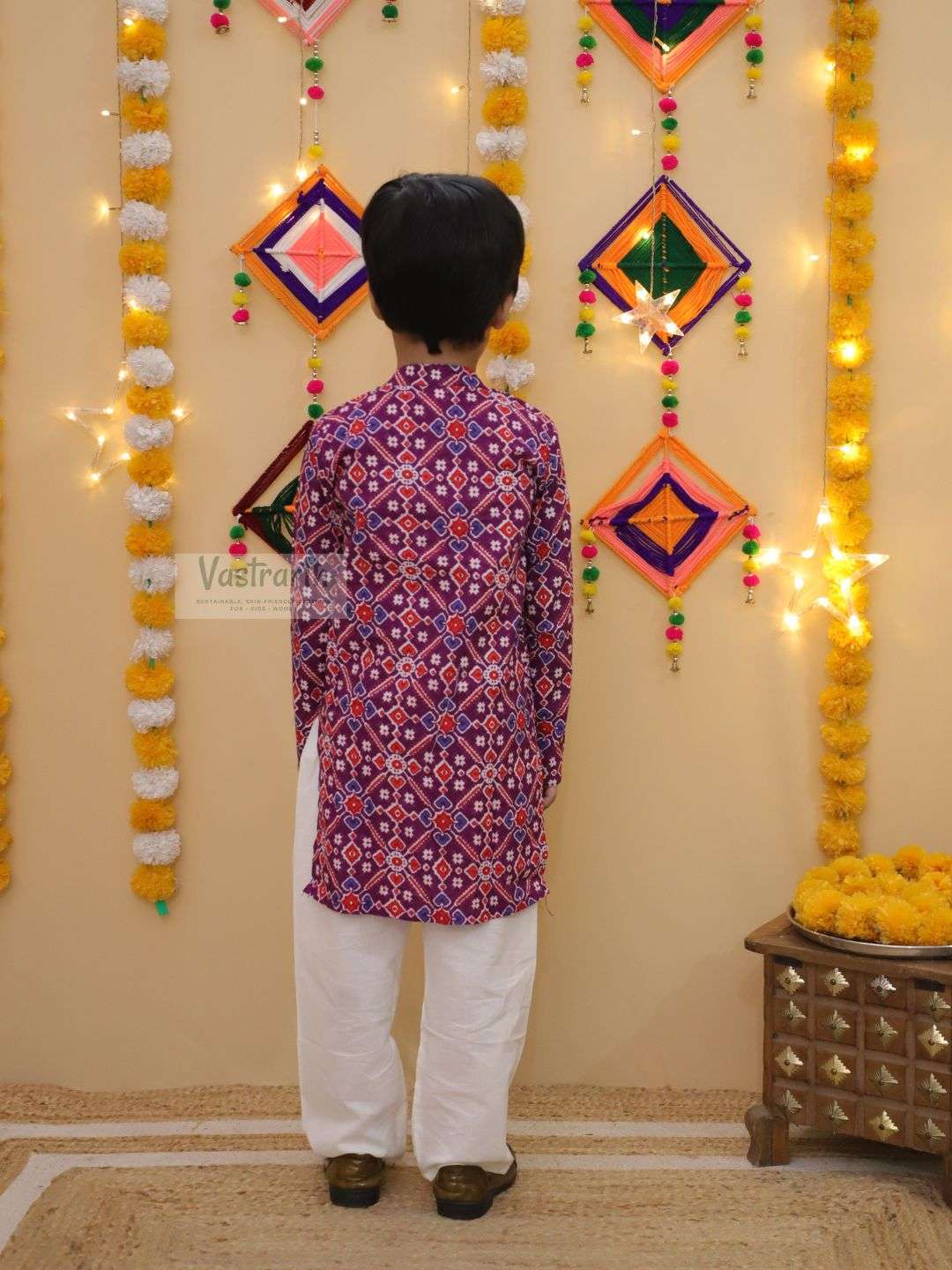 Patola Purple kurta pajama- Vastrarth offers sustainable Boys Kurta Pajama Sets, designed for eco-aware families. Our collections, made from environmentally friendly fabrics, promise both luxury and durability. Perfect for weddings and cultural events, these sets provide a seamless blend of heritage style and contemporary design. Choose ethical fashion for your child’s wardrobe essentials. Colour: Purple Top: Knee length kurta, Bottom: Ankle Length pant, Material & Care-Top fabric: Pure Cotton, Bottom fabric: Pure Cotton. Machine Wash with mild detergent only.